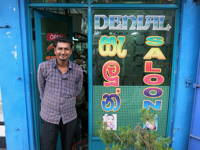 I sat down and told V.V.S I wanted my head shaved. Looking back at him through the menthol-frosted mirror, I immediately saw his disappointment; a simple shave was a major let down. He tried to convince me that he was capable of so much more, as per the pictures of models with quiffs, side-parts, mop-tops and undercuts collaged across the walls. As I was steadfast in my conviction, V.V.S dolefully picked up the clippers, blew off the old hair and began to work. After he gave me the once over, he pulled out his pair of orange craft scissors and began to snip away at the pesky bits and asked one last time if I was sure I didn’t want a Sri Lankan flag shaved into the back of my head. I kindly refused and he dusted me down with the broom that also doubled as the bench sweeper and told me that the price for his craftsmanship was 130 rupees, or $1.10. I gave him 140 (big tipper) and bid V.V.S and ‘Denial’ adieu.