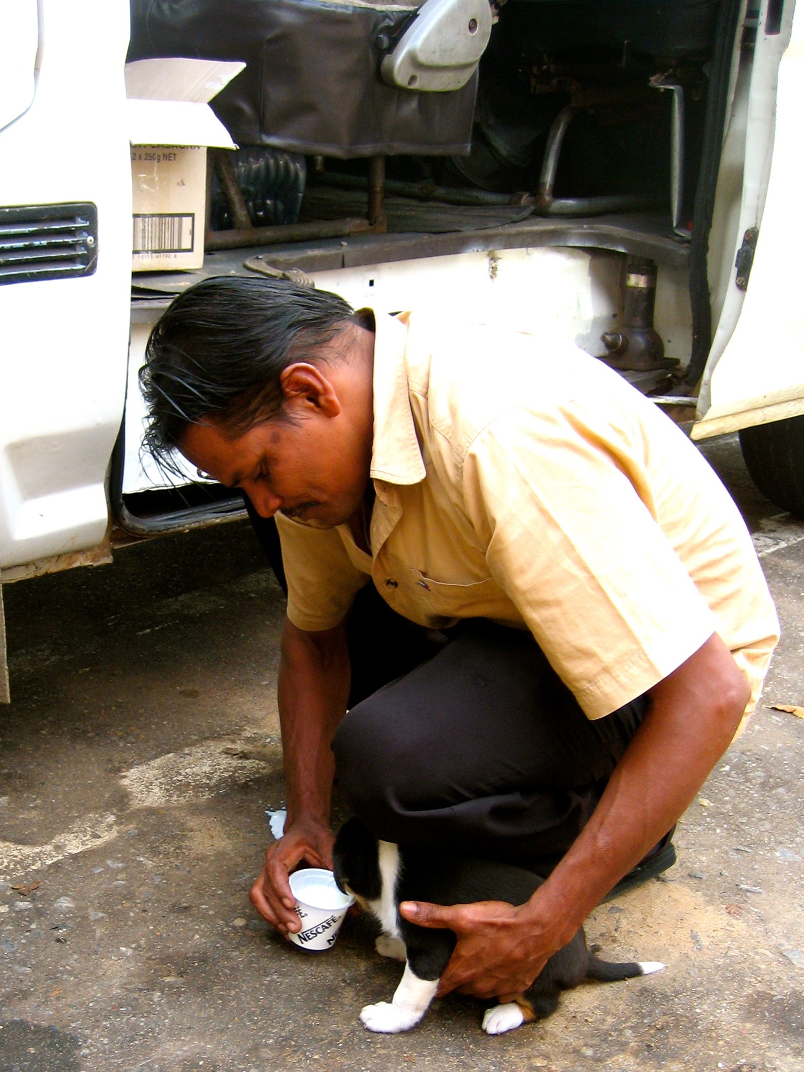 It took about an hour before the motion sickness hit him and he began to spew in his little box. A spewy dog for 4 hours is the only way to truly experience Sri Lanka. Every 30 mins we would stop, wash him down, and give him a bit of water. Poor little battler. After about 3 hours he had nothing left and fell asleep dreaming about big meaty bones and solid ground. He needed the rest; he was about to be smothered with hugs by Kannan’s 3 little boys when he arrived at his new home.