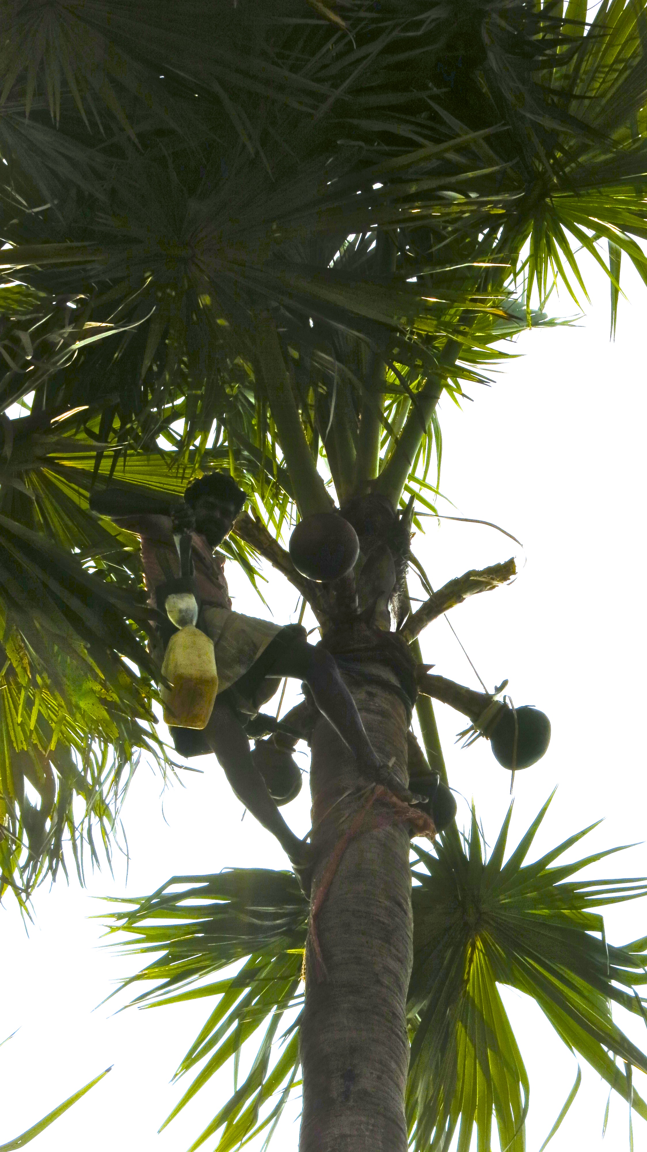 Toddy is the working man’s booze. A real man’s only drink. Made from the fermented sap of the palmyra tree, toddy is tapped in the morning and drunk in the afternoon when its alcohol level peaks.
