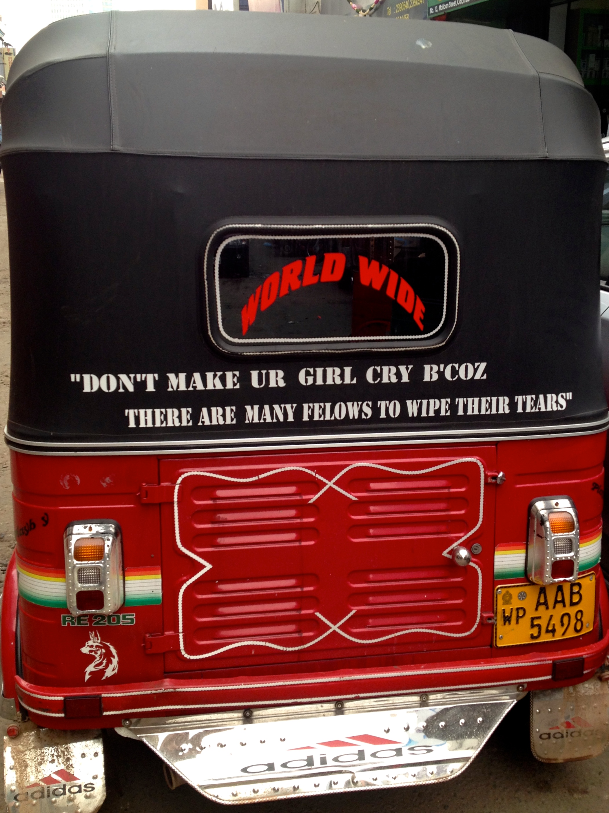 Tuk Tuk man rules the roads of Sri Lanka, always on call to get the job done (unless he is asleep, or it’s time to pick up the wife and kids). In the words of Tuk Tuk man himself “ I am not my best I am fringe my best”, I could not have said it better myself. Fringe on Tuk Tuk man…fringe on.
